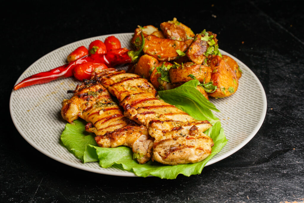 300 גרם פרגית עם תוספות: אורז / צ'יפס / קרעי תפוח אדמה / סלט ירוק.